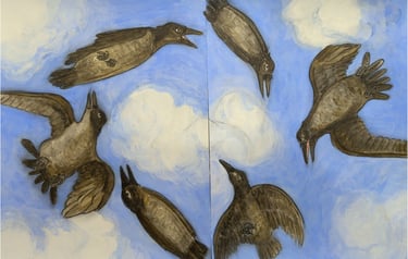 Illustrations are acrylic on paper, 9"x 12"